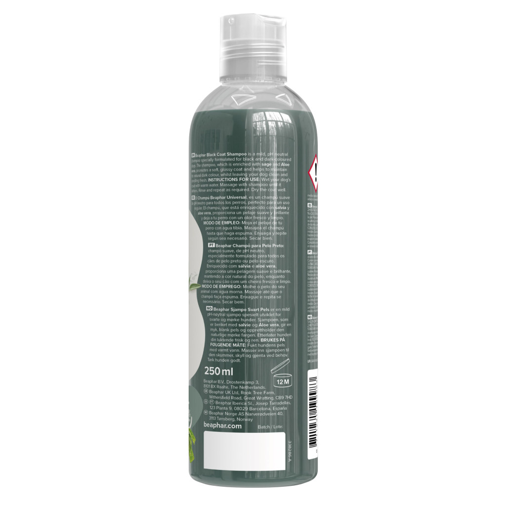 A Beaphar sampon zsályával fekete szőrű kutyáknak (250 ml) kifejezetten a fekete szőrrel rendelkező kutyák bőrére fejlesztett ápoló. A zsálya kivonat és Aloe vera hidratálja a bőrt, puhává teszi a bundát, és segít megőrizni annak mély, ragyogó fekete színét. Gazdagon átöblíthető, friss és tiszta illatot hagy.