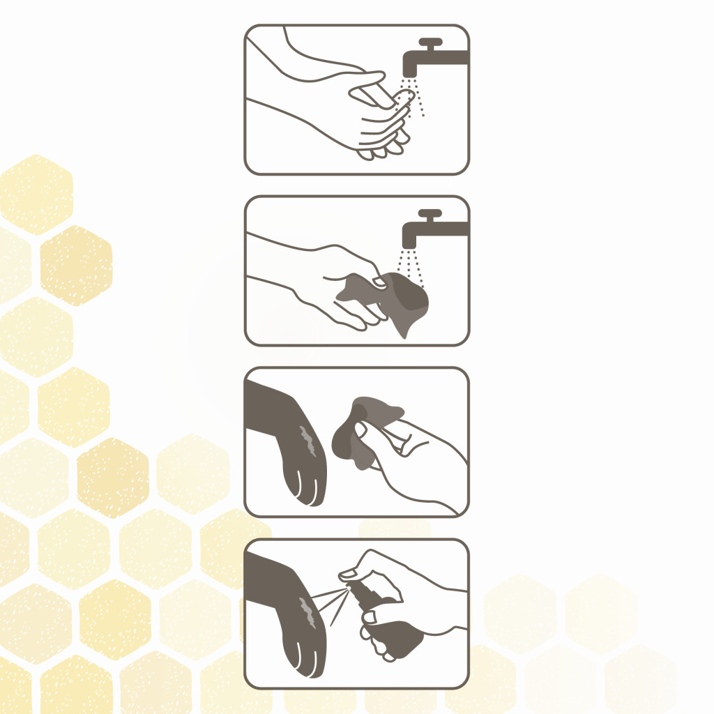 Használat előtt mindig olvasd el a csomagoláson található útmutatót. Óvatosan tisztítsd meg a sérült bőrfelületet vattával, szükség esetén langyos vízzel. Használat előtt alaposan rázd fel. A gyógyulásig naponta kétszer permetezd az érintett területre kb. 10 cm távolságból.