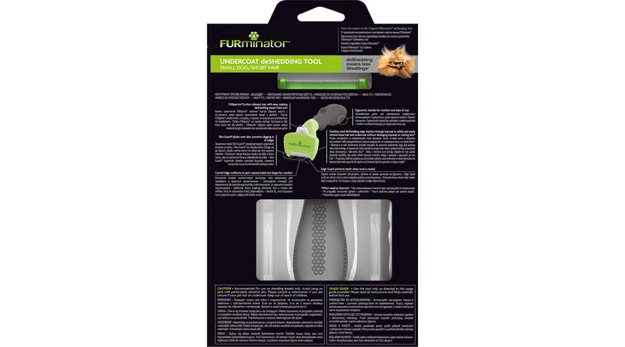 Ez a FURminator aljszőrkefe S méret speciálisan kis testű, rövid szőrű kutyák számára készült: pl. tacskók, bulldogok, franciák. A finom acél él hatékonyan eltávolítja az elhalt aljszőrt és kilazult szálakat anélkül, hogy sértené a fedőszőrzetet vagy irritálná a bőrt. A Skin Guard® vagy hasonló élvédő megakadályozza, hogy a penge karcoljon vagy túl mélyre hatoljon. Az ergonomikus fogantyú biztos tartást ad, csúszásmentes kialakítással – így a gazdi végig komfortosan tudja használni.