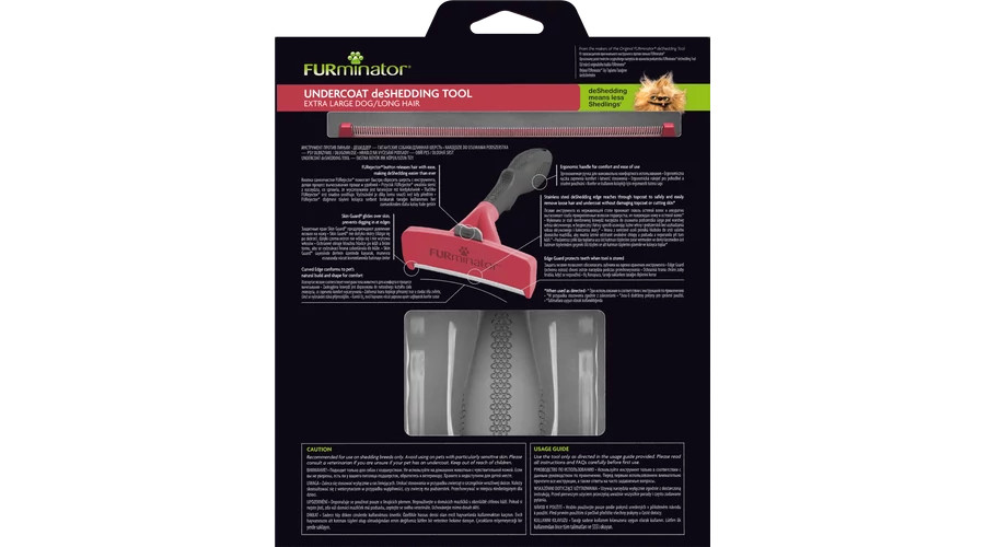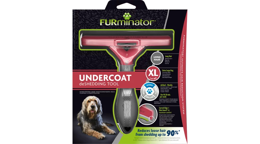Ez a FURminator aljszőrkefe XL méret kifejezetten óriás testű, hosszú szőrű kutyákra (például bernáthegyi, nagy keverékek, például nagy fajtaként) lett tervezve. A hosszú bunda alá hatoló penge hatékonyan eltávolítja az elhalt aljszőrt és kilazult szálakat, anélkül, hogy sértené a fedőszőrzetet vagy irritálná a bőrt. A Skin Guard® élvédő segít minimalizálni a karcoló hatást, míg az ergonomikus fogantyú stabil fogást biztosít nagy felület és vastag bunda esetén is.