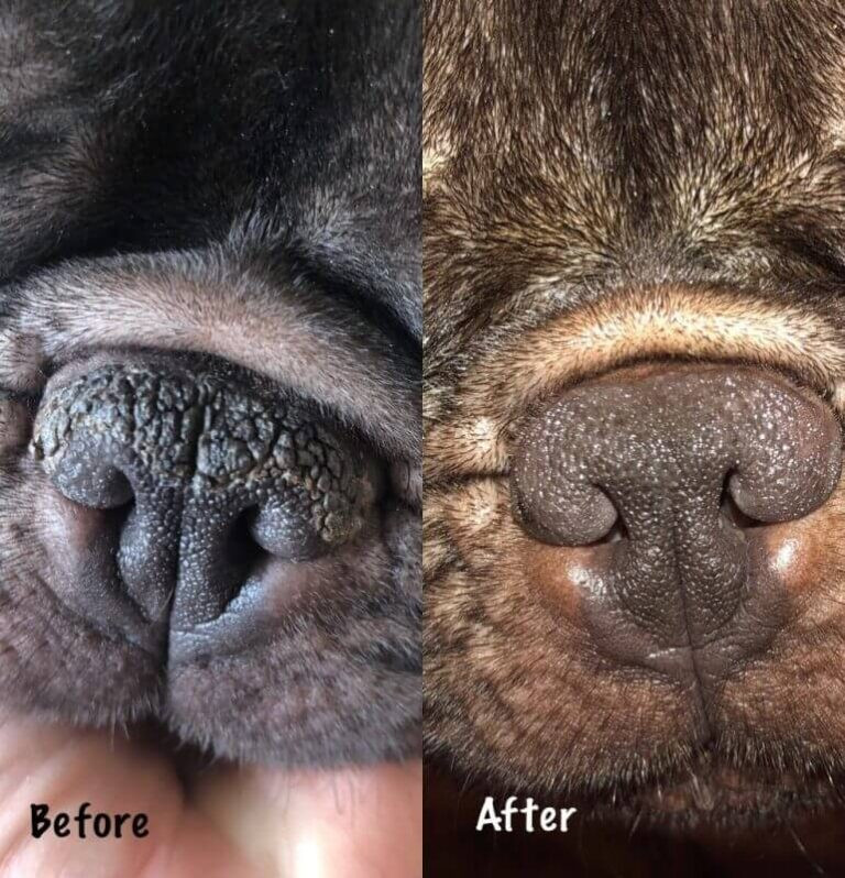 Vékony rétegben vidd fel a megtisztított orr bőrére, majd óvatosan masszírozd be, ügyelve, hogy az orrlyukba ne kerüljön. Az első kezelés után 2–3 nappal meleg vizes lemosással távolítsd el az elhalt bőrt. Használata javasolt napi 2–3 alkalommal, megelőzéshez napi egyszer. Különösen ajánlott rövid orrú fajtáknak és szélsőséges időjárási viszonyok esetén.