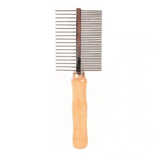 A Trixie kétoldalas fém fésű fanyéllel hatékony eszköz a kutyák és macskák szőrzetének ápolásához. A kétféle fogazat lehetővé teszi a szőrzet alapos átfésülését, valamint a gubancok és kisebb csomók eltávolítását.